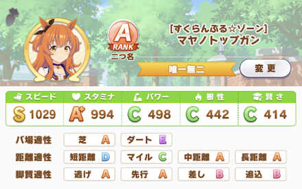 マヤノトップガン!ダート育成法 因子でダートとマイル適性を チーム戦のダートはマイルなので、 ダート適性とマイル適性のどちらもaが欲しい。 ほとんどの芝適性ウマ娘がダートgに対して マヤノトップガンは最初からダート適性e です。 マヤノトップガン ウマ娘. 目次1 マヤノトップガンの基本情報1.1 初期パラメータ1.2 バ場適性1.3 距離適性1.4 脚質適正1.5 成長率2 育成シナリオ目標3.